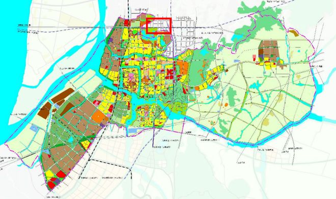 根据土地利用规划图可以看到,以马鞍山南站(灰色)为核心,南站周边规划以城镇住宅用地/商业用地(橙色)和二类城镇住宅用地(黄色)为主,马鞍山南站南侧有大片的公园绿地和水域的生态规划,并配有商业用地(红色)。