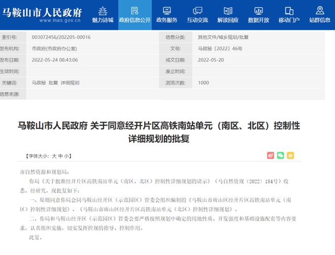 官方!马鞍山南站片区控制性详细规划获批!城南高铁新城来了!