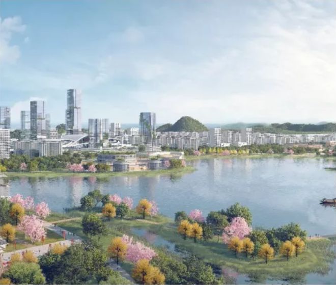 高铁南站片区将打造1座高效便捷的高铁枢纽、 1个联动山水城的千米绿轴、3个引领产业发展的科创核心、6处方便可达的市级公服设施、10公里畅通无阻的活力绿道、50公顷平静开阔的金山湖水面、6处特色鲜明的主题生态公园。