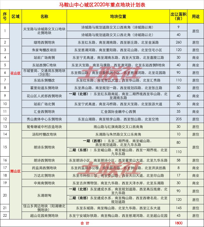 重磅丨马鞍山中心城区2020年供地计划曝光!22宗地1800亩
