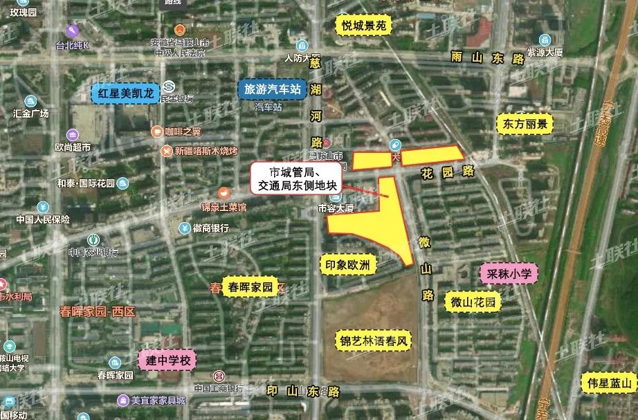 市城管局、交通局东侧地块位于花山区微山路与花园路交口,东至微山路,南至印象欧洲小区,西至慈湖河路,北至花园路,总土地面积90亩,规划用地性质:居住。