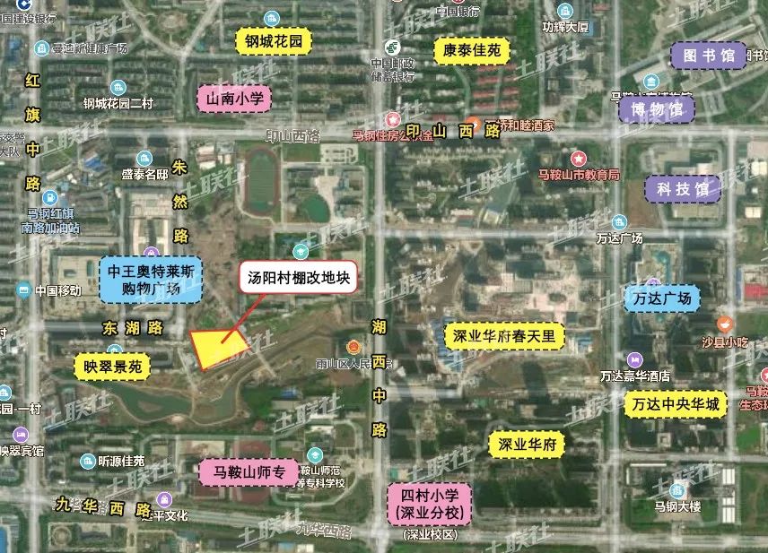 宗地位于马鞍山中心城区核心位置,一路之隔为中王奥特莱斯购物广场,距万达广场也仅1.2公里左右,坐享丰富的商圈配套资源。地块周边开发较为成熟,分布着众多成熟社区,生活氛围浓厚。市图书馆、市科技馆、市博物馆、山南小学、四村小学(深业分校)、朱然文化公园等社会公建环伺。