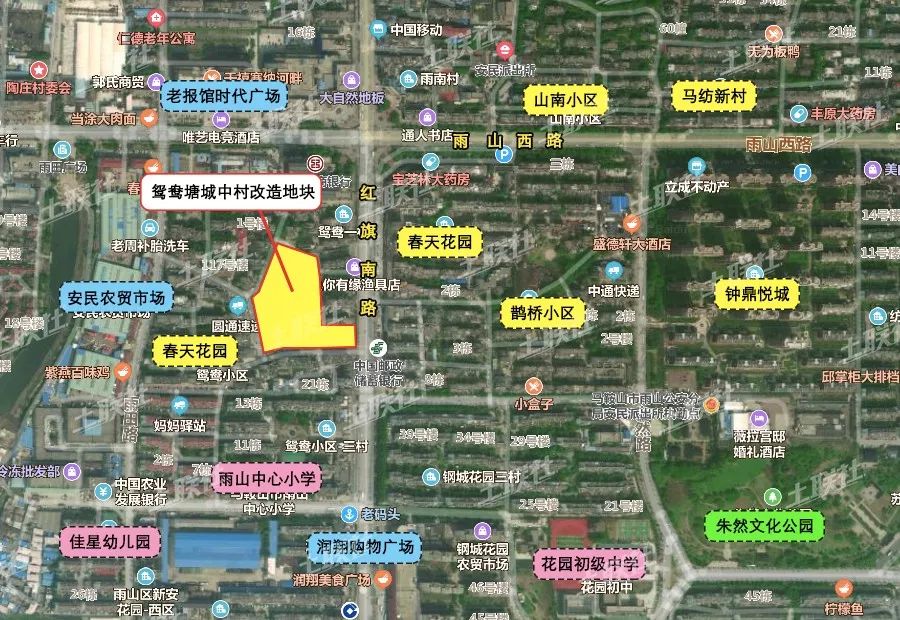 鸳鸯塘城中村改造地块位于雨山区雨山路与红旗南路交叉口西南角,总土地面积30亩,规划用地性质:居住。